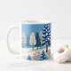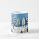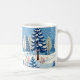 Winter trees and bushes in a snowy landscape, with snow falling all around, makes a beautiful holiday mug.
