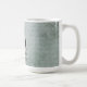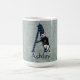Design de embustamento de trigo para Alice em amantes de Wonderland de todas as idades apresenta letra maiúscula / inicial A com preenchimento de harlequin preto e azul e ilustração original de White Rabbit que foi pintada, em um fundo floral vintage angustiado e azul tinteiro. Personalizar com nome ou outra mensagem