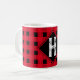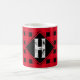 Caneca De Café xadrez de búfalos modernos vermelho e preto Monogr