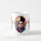Esta vibrante design de camiseta homenageia a falecida rapper XXXTentación, que apresenta seu impressionante estilo de cabelo meio-loiro e tatuagens faciais meio-pretas, acompanhado por símbolos de corações quebradores e asas de anjo contra um pano de fundo cósmico.
