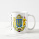 Mug marcado com a heráldica da voivodato subcarpática de Polônia, Ucrânia, cidade de Oleszyce perto de Lubaczow e Kievan Rus prematuro". O nome da família "Jakimicha", em letras latinas e em cirílico, aparece na caneca (versões em polonês e ucraniano de "Yakimicki" americanizado).