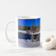 Coffee Mug mostrada com uma impressão de fotografia de uma cena de inverno no Parque Nacional de Yellowstone. Personalize este item ou comprar como está. Imagem do stock