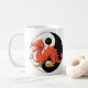 Símbolo yin-yang preto e branco com um dragão vermelho 3d.