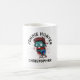 Uma macabra caneca de café personalizada com um zumbi legal, vestindo roupas rasgadas e torcidas com braços estendidos à procura de brraaaaiinas. Olhos grandes vazios com uma pele podre de cor verde ansiosa. Sangue espalha atrás de sua cabeça. Texto diz caçador de zumbis, em letra curvada. Personalize com um nome.