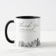Caneca de café moderna com a silhueta de Sacramento presente de favor com o texto "obrigado". O design mostra um rascunho deslumbrante com a capacidade de personalizar seus nomes e localização exata. Entre na ferramenta de design da Zazzle para personalizações adicionais.