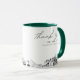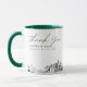 Caneca de café moderna silhueta de Jacksonville para presente de casamento com roteiro "obrigado". O design apresenta um esboço deslumbrante com a capacidade de personalizar seus nomes e localização exata. Entre na ferramenta de design da Zazzle para personalizações adicionais.