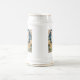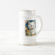 Caneca de cerveja de cerveja com um gatinho no estilo Art Nouveau de Alphonse Mucha! Um gatinho branco e fofo com poses azuis com flores amarelas. Um presente bonito para amantes de gatos e colecionadores de Art Nouveau!