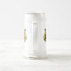 A cabeça de leão em cores de ouro é replicada 3 vezes em torno da caneca. Imagem de detalhes arquitetônicos filtrada como "papel dobrado", dando ângulos agudos.