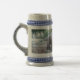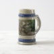 Uma caneca de cerveja com uma foto de dinossauro de triceratops. Fotografia por © KexesKreations.
