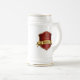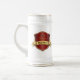 O na moda personalizou a caneca de cerveja do presente de casamento com gráficos de uma chapa vermelha e goldtone do shinny do protetor do estilo, em ambos os lados. Personalize o amarelo dourado e texto preto, na chapa, para ler qualquer coisa que você quer. Excelente como presentes à festa de casamento do noivo.