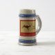Nosso logotipo vermelho e amarelo clássico em uma caneca de cerveja clássica