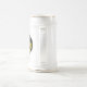 Caneca de cerveja branca com geólogo - os martelos cruzados da rocha projetam no amarelo e no preto.
