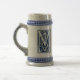 Uma bela letra celta emboscada M iluminada com cabeças de dragão sobre um fundo azul escuro e veludo. Escolha o botão "Personalizar" e adicione seu sobrenome, altere o tamanho da letra ou solte uma das letras e adicione o mascote.