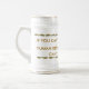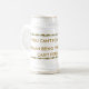 este é um 22oz. a caneca de cerveja que é branca/ouro com um provérbio que esteja no ouro rotula.