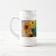 Caneca de cerveja de cerveja que apresenta o Buquê de pintura de óleo de Girassóis de Claude Monet (1881). Lindos girassóis num vaso azul sobre uma mesa vermelha. Um presente de excelente para fãs do impressionismo e da arte francesa.