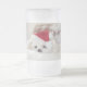 Caneca De Cerveja Vidro Jateado Cachorro Branco bonito num chapéu de Natal Vermelh