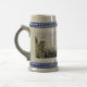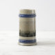 Artista: Harry Bullock Webster - Urso no Cliff. Aquarela. c. 1874-1880. Imagem é uma pintura impressionista de um urso negro parado em um penhasco sobre uma floresta verde escura com picos de montanha de neve na distância. MAS... a imagem é repetida na superfície da caneca de cerveja, então você tem uma panorâmica espelhada com DOIS ursos contemplativos!