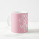 Você da menina média "não pode sentar connosco" citações na caneca no branco no design cor-de-rosa.