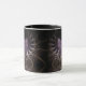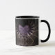 Envolvido no amor. Arte fractal escura com um coração roxo entrelaçado com teias fractais com reflexão sobre a água