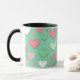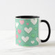Beba sua bebida favorita nesta caneca de corações verde e pastel. Simples, mas bonito presente para aquele especial para expressar amor ou apenas para se tratar.