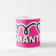 A caneca da criança personalizada com nome para a garota. Boa ideia de presente para crianças Aniversário. Uma caneca personalizável com um pequeno coração feminino. Cor de fundo rosa-quente personalizada.