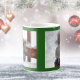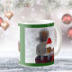 Esta caneca mostra duas fotos bonitas de esquilos, sobre um fundo verde, que parecem estar vestindo chapéus de Natal. Esta caneca é uma forma excelente de beber o seu cacau de Natal ou ovos quentes e torradas na época de férias. A parte de trás da caneca tem uma foto diferente de um esquilo em um boné.