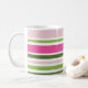 Esta caneca rosa e verde é ideal para café, chá, cacau e sopa.