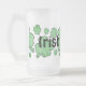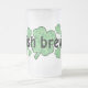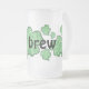 Um córrego de shamrock decora esta caneca de vidro congelado com a legenda "Irish Brew". Perfeito para festas de Dia de São Patrício.
