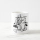 Um design de bonitinho estilo cartoon de um gato preto e branco. Este gato está sentado e com a língua para fora. O gato é, na sua maioria, branco e tem fundo preto. Este design de gato preto e branco parece excelente nesta caneca. Perfeito para si mesmo ou como presente