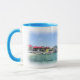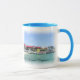 Enjoy que sonha sobre umas férias das caraíbas às ilhas de Grande Caimão ao apreciar sua bebida quente com esta caneca bonita. Este seascape colorido de um porto de chamada é definida uma "picareta mim acima de".