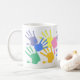 Uma caneca dos handprints do arco-íris.