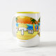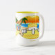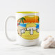 O surfista Kilroy pode ter mordido fora de mais do que poderia mastigar nesta praia! Isso não o retardará para baixo, embora! Aprecie uma caneca de Kilroy do surfista de sol amarelo do verão, como você dirige para fora para jogar!
