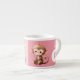 Caneca/xícara de criança / para crianças. "Espresso tamanho" caneca - tamanho perfeito para uma criança pequena. Nesta xícara de bebendo há um macaco fofo, com estrelas. Adicione um nome e inicial. Rosa e branco.