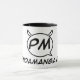 Caneca agradável do dois-tom. Branco com borda e o punho pretos. Caracteriza o PM "orelhas " L logotipo com o "PandaManga.com" abaixo. Excelente para guardarar seu café ou chá da manhã!