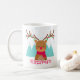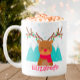 Acalme-se os feriados com esta adorável caneca de renas personalizada com galhadas brilhantes e um amigo alegre de nariz vermelho! Personalizada com um nome, esta xícara festiva faz um doce presente para crianças, netos ou amantes de cacau de férias. Perfeito para o cacau de Natal ou de inverno.