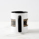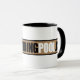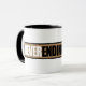 Logotipo do texto de NEP.com na caneca preta & branca da campainha.