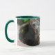 Caçador verde Combo Mug de 11 oz com olhos verdes, gato olhando para você.