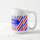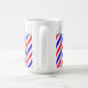 Caneca vermelha, branca e azul de Pólo da barbearia pronta para que você personalize com nome da pessoa ou nome da loja.