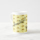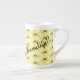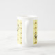 Esta caneca especial é porcelana fina e apresenta uma borda sutilmente floreada e uma alça elegantemente curvada. A design tem um padrão feito de uma cesta de limões com uma abelha pequena Na frente e atrás da caneca estão as palavras "Belo Porco!"