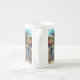 Casual, relaxado, andando de bicicleta, estas são algumas das coisas que compõem o confortável estilo de vida ilustrado na fotografia original de ZoeSPEAK nesta Bone China Mug, Uma bicicleta azul aqua se inclina contra um posto em frente a um bar a céu aberto em Key West, na Flórida. Há um arbusto verde folheado numa banheira, debaixo de um aviso que corresponde à cor da bicicleta. O interior escuro do lugar está cheio de fezes bares de madeira, e guarda-chuvas azul de aqua e cobalto sobre as mesas. Um bar azul aqua na frente completa a foto colorida.