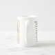 Névoa de desenho animado trabalhando em um aro bordado e sentado no banco, com poema divertido do outro lado da xícara