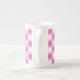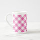 Uma Caneca China Óssea, com um padrão Gingham bonito, colocado diagonalmente, rosa e branco, na coleção Posh & Painterly "Primroses". O padrão de gingham vai ajustado todos os tamanhos de caneca.