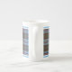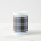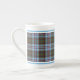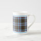 Caneca de porcelana óssea no tartan familiar para Clan Anderson, um elaborado padrão de xadrez escocês em azul claro, verde e vermelho, com sotaques preto, branco e amarelo brilhante.