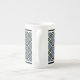Uma caneca de porcelana com o padrão formal de clã tartan da família Thompson. Padrão de xadrez escocês popular em azul claro, preto e branco com sotaques vermelho e amarelo brilhantes.
