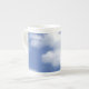 White fluffy clouds are scattered across a bright blue sky. The image conveys a sense of peace and openness.