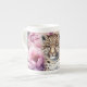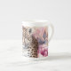 A imagem apresenta uma ilustração lindamente detalhada de um jovem leopardo cercado por um conjunto de flores vibrantes e florescentes. O leopardo, com sua pele pontilhada distintamente e olhos expressivos, está posicionado no centro com destaque, criando um ponto focal marcante. As flores circundantes, predominantemente em tons de rosa e roxo, acrescentam um toque macio e caprichoso à composição. O fundo inclui pedaços de cores douradas e pastéis, aprimorando o sonho geral e a sensação artística da imagem. Essa mistura cativante de vida selvagem e elementos florais torna a imagem simultaneamente atraente visualmente e única, perfeita para produtos que visam evocar um sentido de elegância e beleza natural.