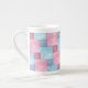 Caneca De Porcelana Denim Patchwork Bone China Mug, Pinks, Blues
