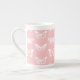 Caneca De Porcelana Esboço da borboleta, rosa-casca e branco