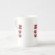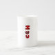 Vocês podem admirar o meu desenho de um coração felpudo vermelho e preto listrado que eu chamo, "Eu Felpudo U", agora adicionado a esta caneca da China Óssea. Isto faz o presente perfeito para qualquer ocasião.
