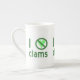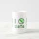 Eu odeio amêijoas. O design usa letras verdes, um coração verde e o sinal internacional "NÃO" para ler "Eu odeio amêijoas". Para aqueles que não "amam" elas ou frutos do mar.